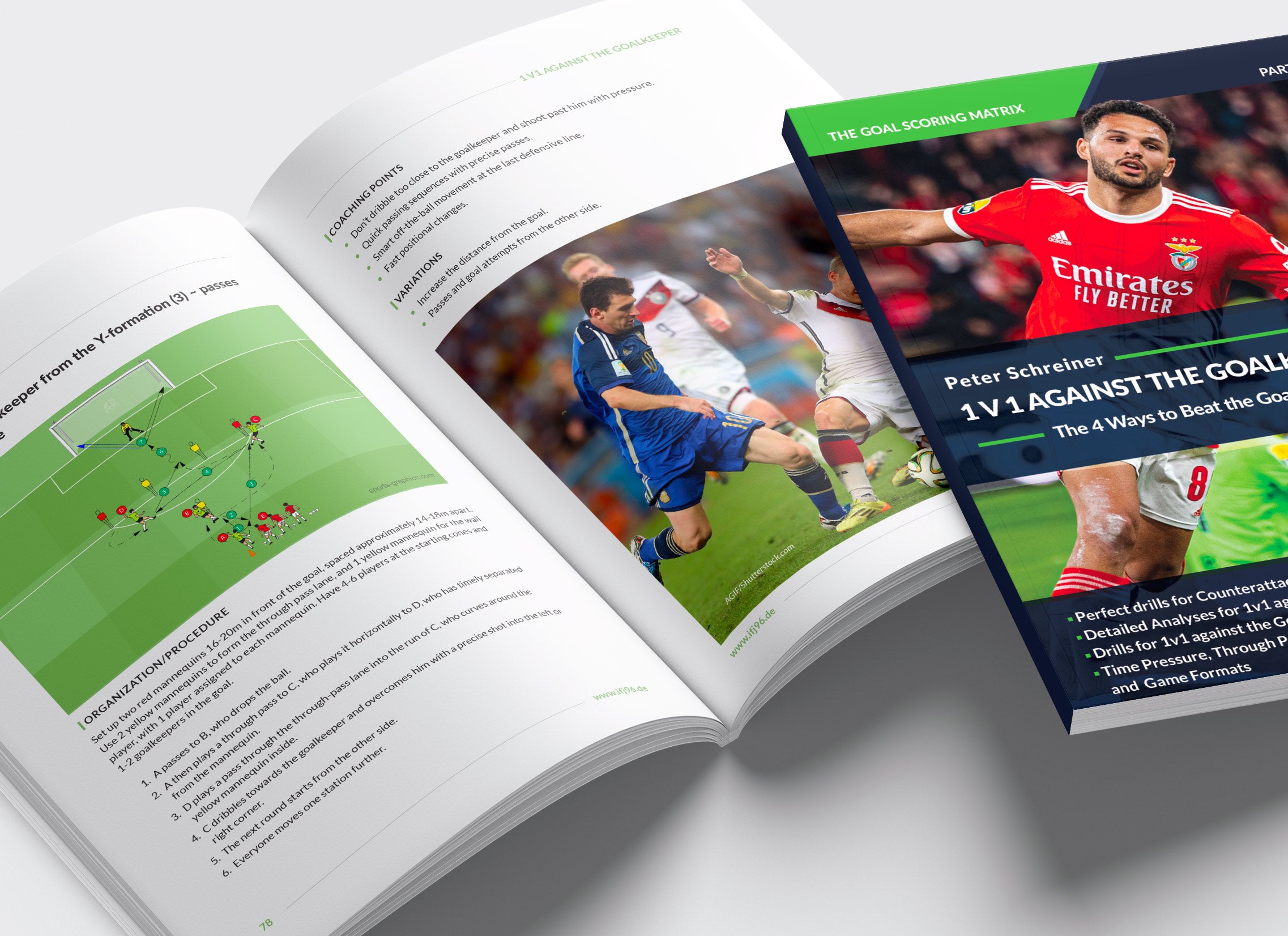 This eBook is structured into two focused sections. The first part delves into counterattacks, providing a comprehensive look at situations leading to 1v1 against the goalkeeper. Schreiner presents a range of training scenarios, from 1 against 0 to 3 against 2, emphasizing time pressure and tactical decision-making. The second part zeroes in on the climactic 1v1 standoff with the goalkeeper, outlining four strategic methods to gain the upper hand.
