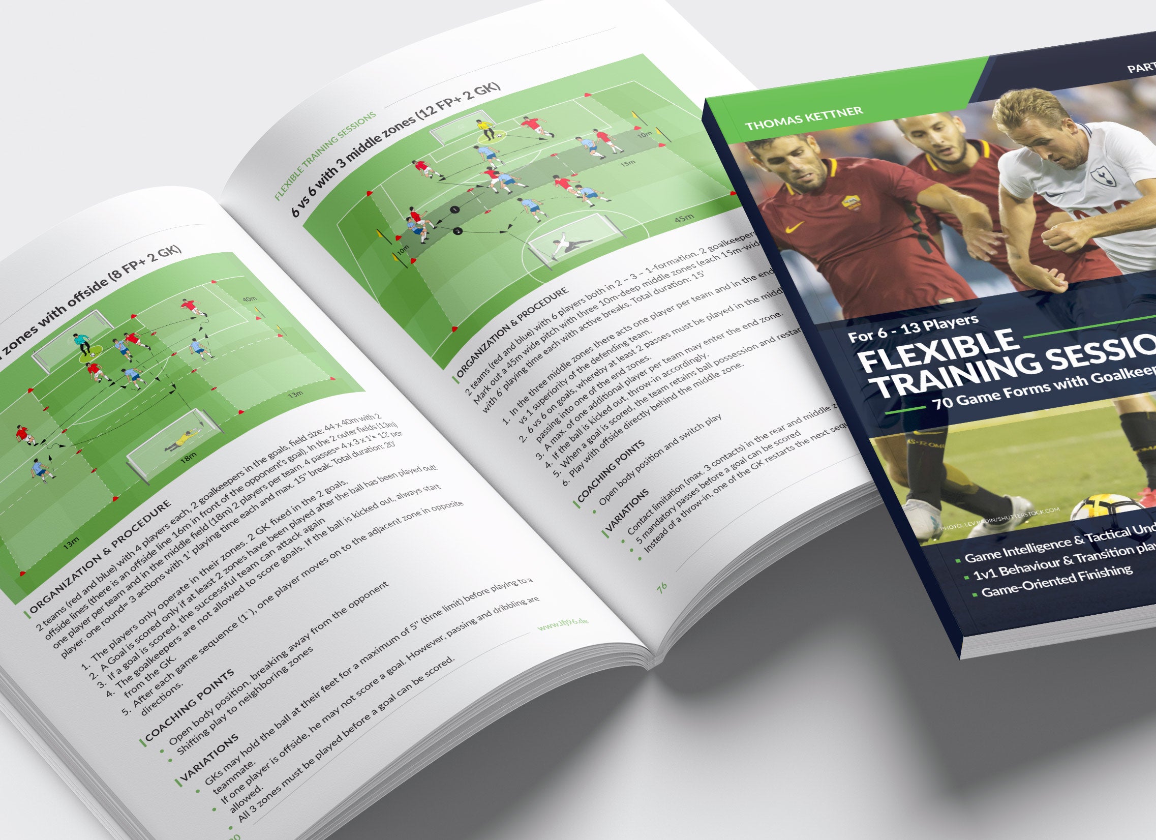 The first part of the series "Flexible Training Sessions" presents 70 game forms with Goalkeepers that help develop not only game intelligence, tactical understanding, and dueling behavior, but also all 4 phases of the game (own possession, transition after losing possession, opponent's possession, and transition after winning the ball). All game forms are also ideal for realistic goal-scoring training.