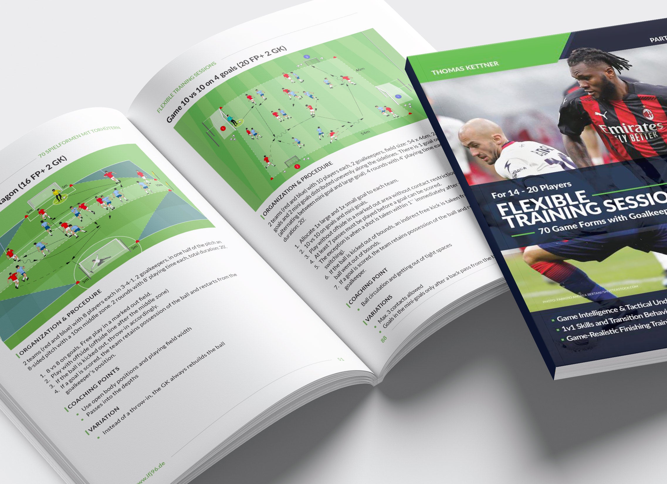 This book is the second part of the Flexible Training Sessions series and focuses on game forms for 14 to 20 players. It provides coaches with 70 practical examples designed to improve game intelligence, tactical understanding, and tackling behavior across all four phases of the game: