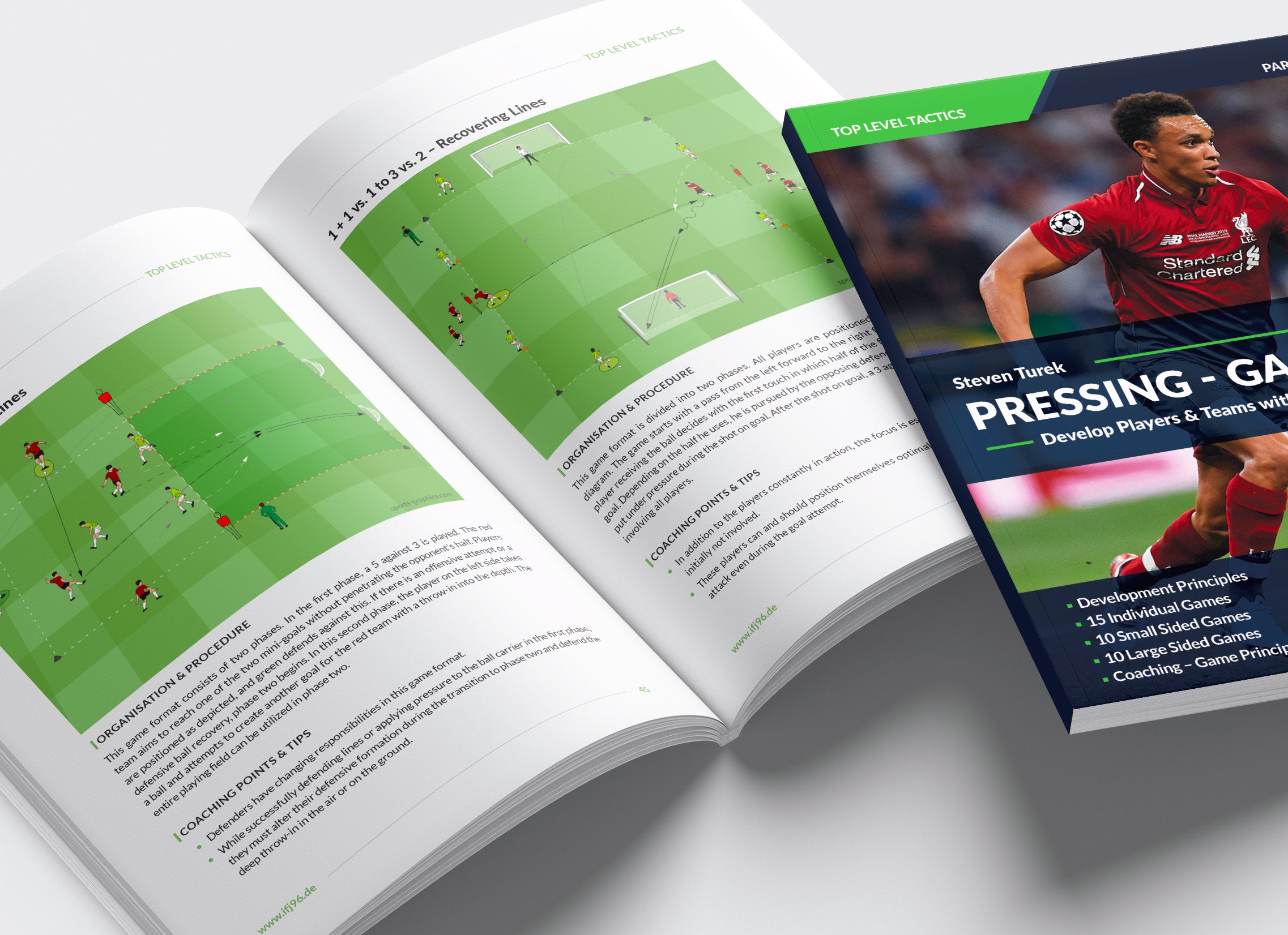 "Pressing Games" is a practical eBook for soccer coaches, written by Coach Steven Turek. It offers 35 effective drills focused on pressing and counter-pressing, inspired by successful teams like FC Barcelona, FC Liverpool, and those coached by Mourinho and Simeone.