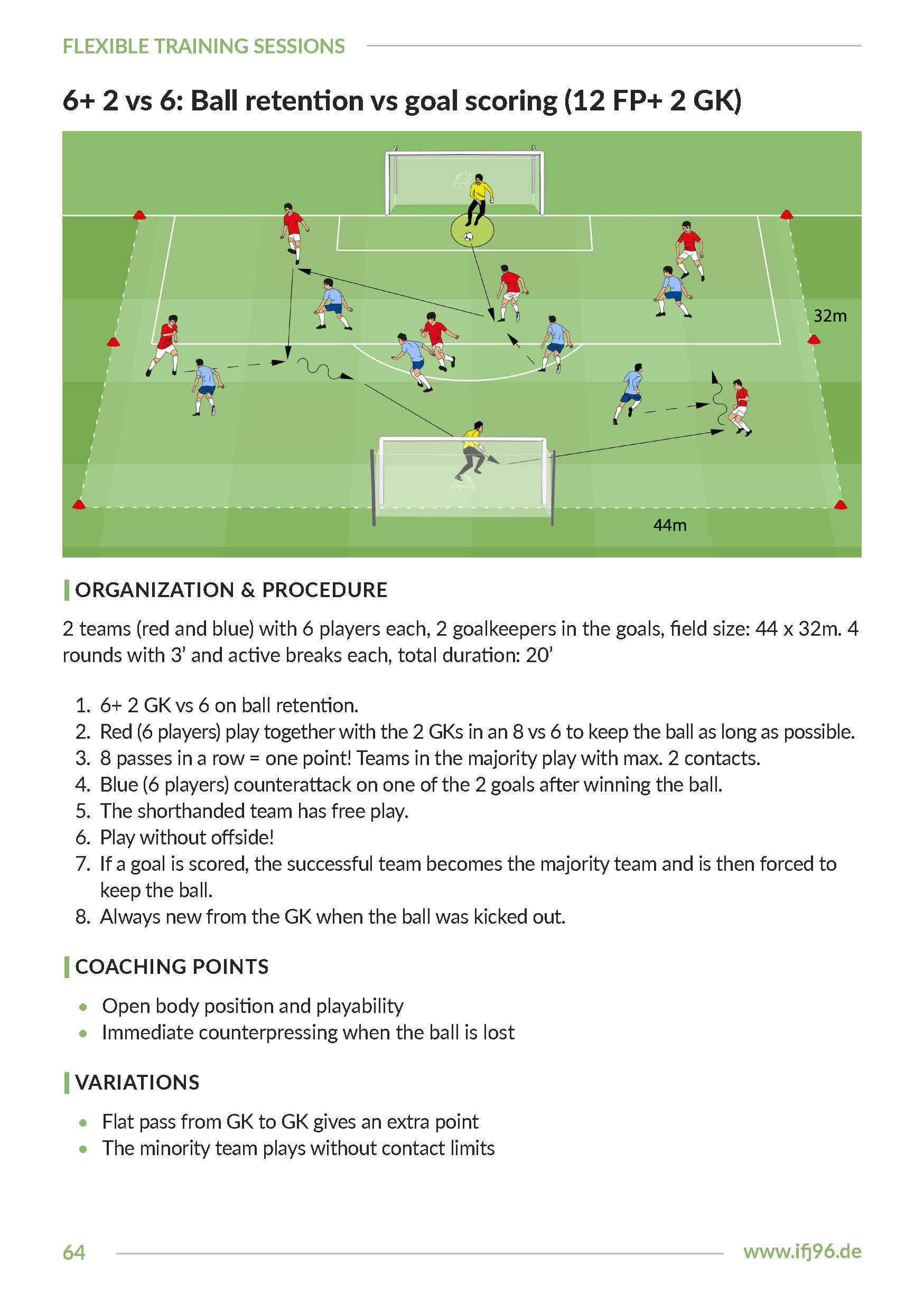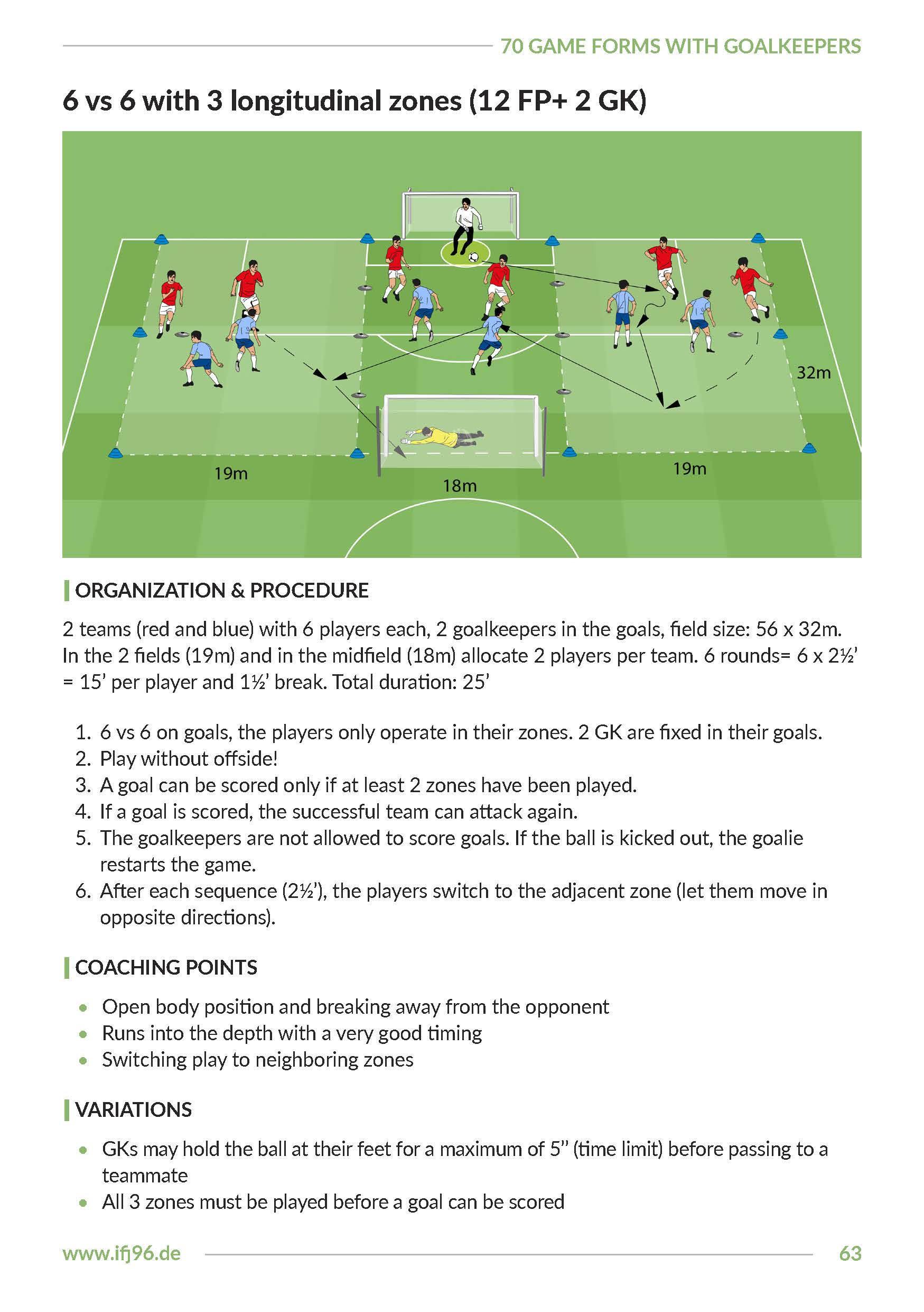 The first part of the series "Flexible Training Sessions" presents 70 game forms with Goalkeepers that help develop not only game intelligence, tactical understanding, and dueling behavior, but also all 4 phases of the game (own possession, transition after losing possession, opponent's possession, and transition after winning the ball). All game forms are also ideal for realistic goal-scoring training.
