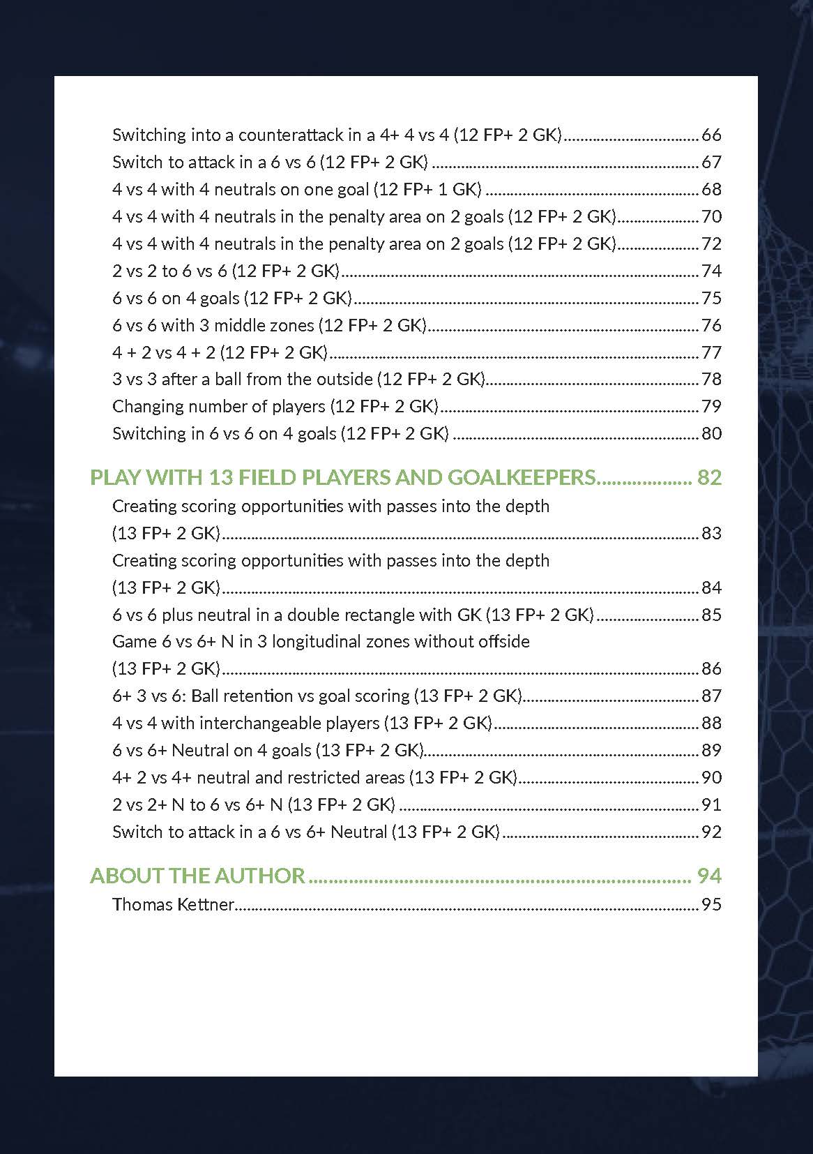 70 game forms to improve your players' game intelligence, tactical understanding, dueling behavior, transition play, and create realistic goal-scoring training sessions.
