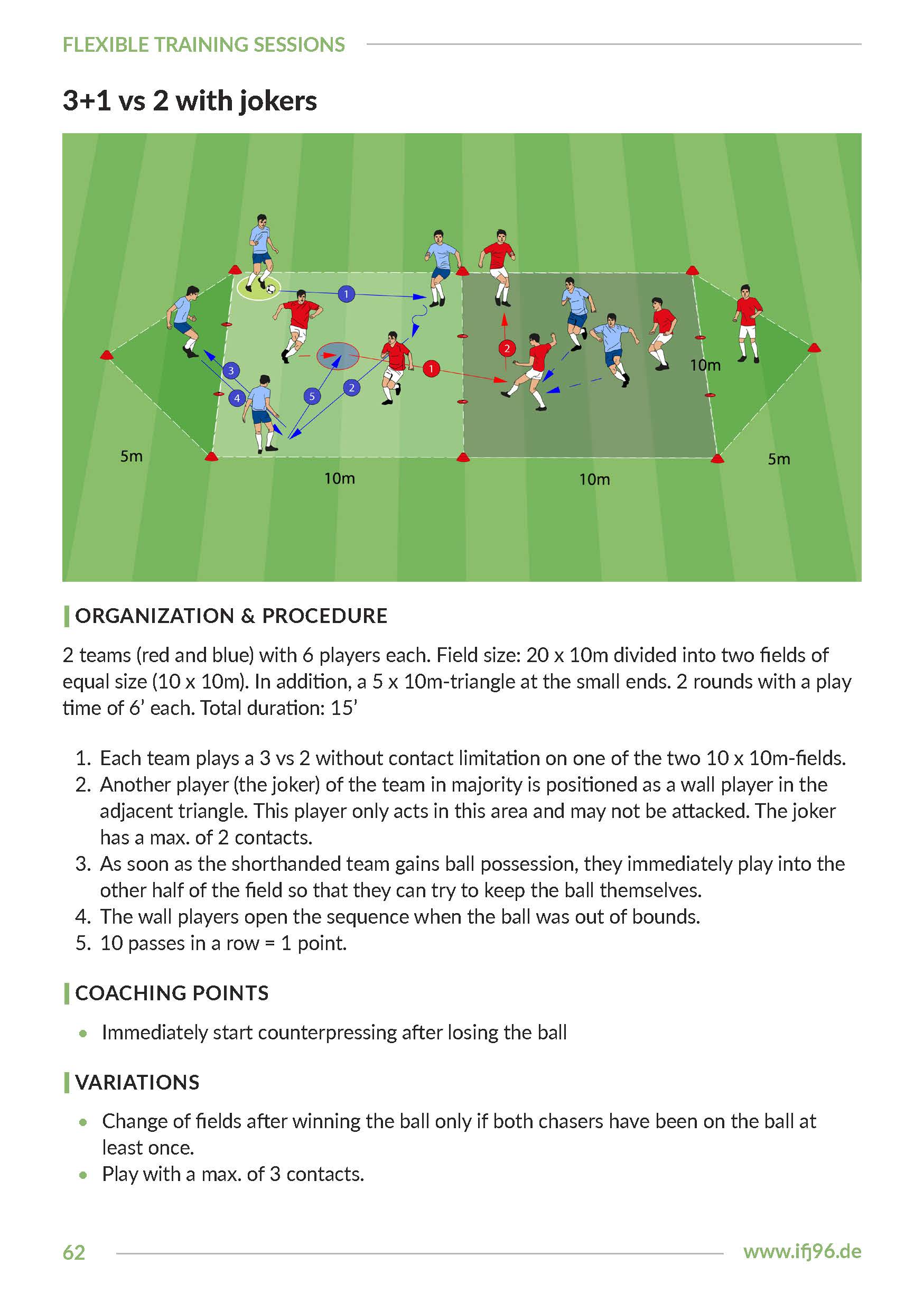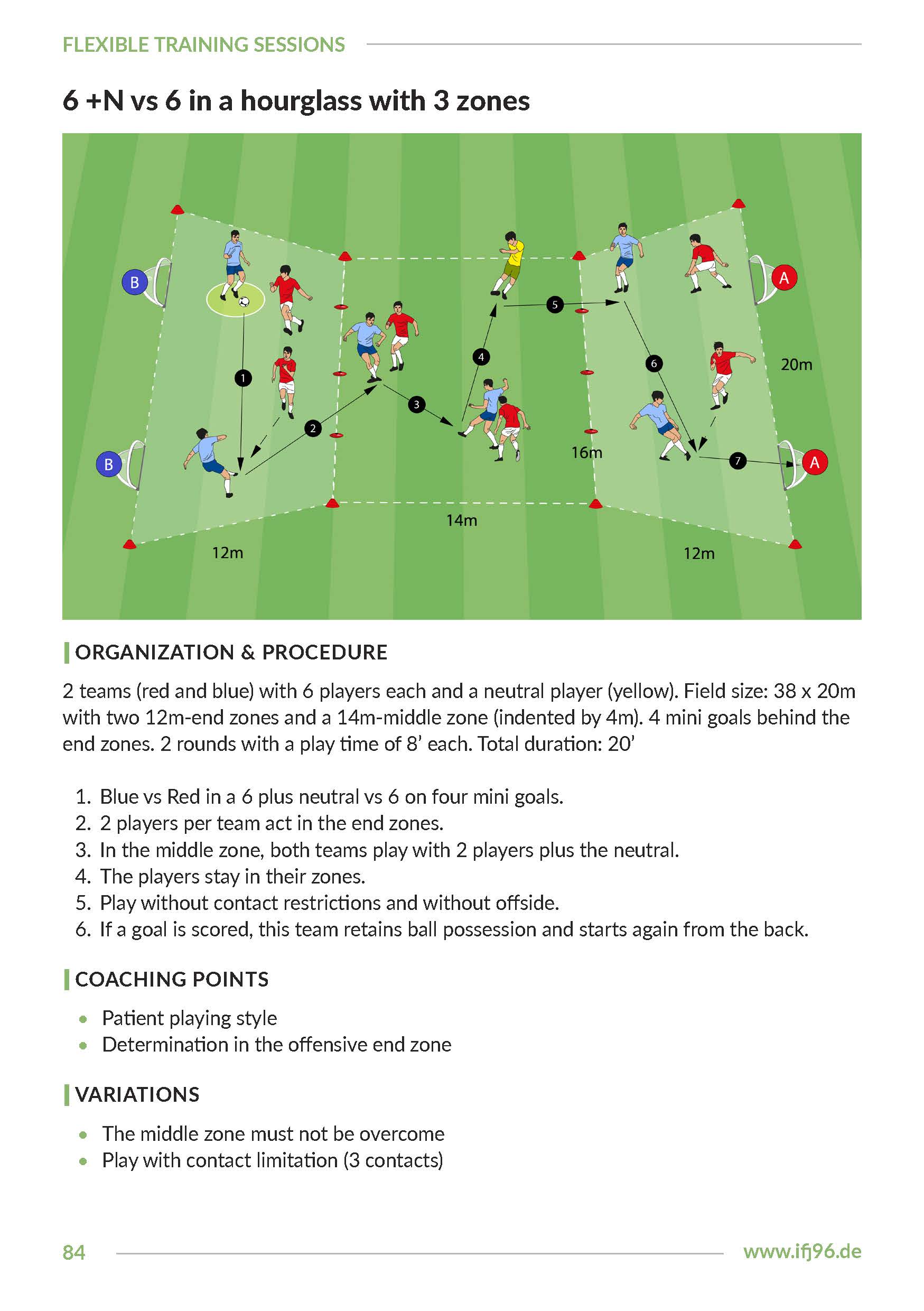 The special thing about his concept is the system of organizing the game forms. It can be used very flexibly and adapted to the number of players on the training day.