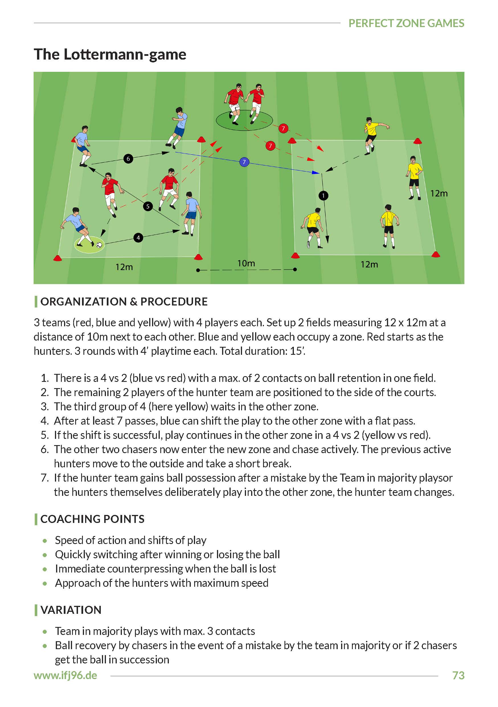 The special thing about his concept is the system of organizing the game forms. It can be used very flexibly and adapted to the number of players on the training day.