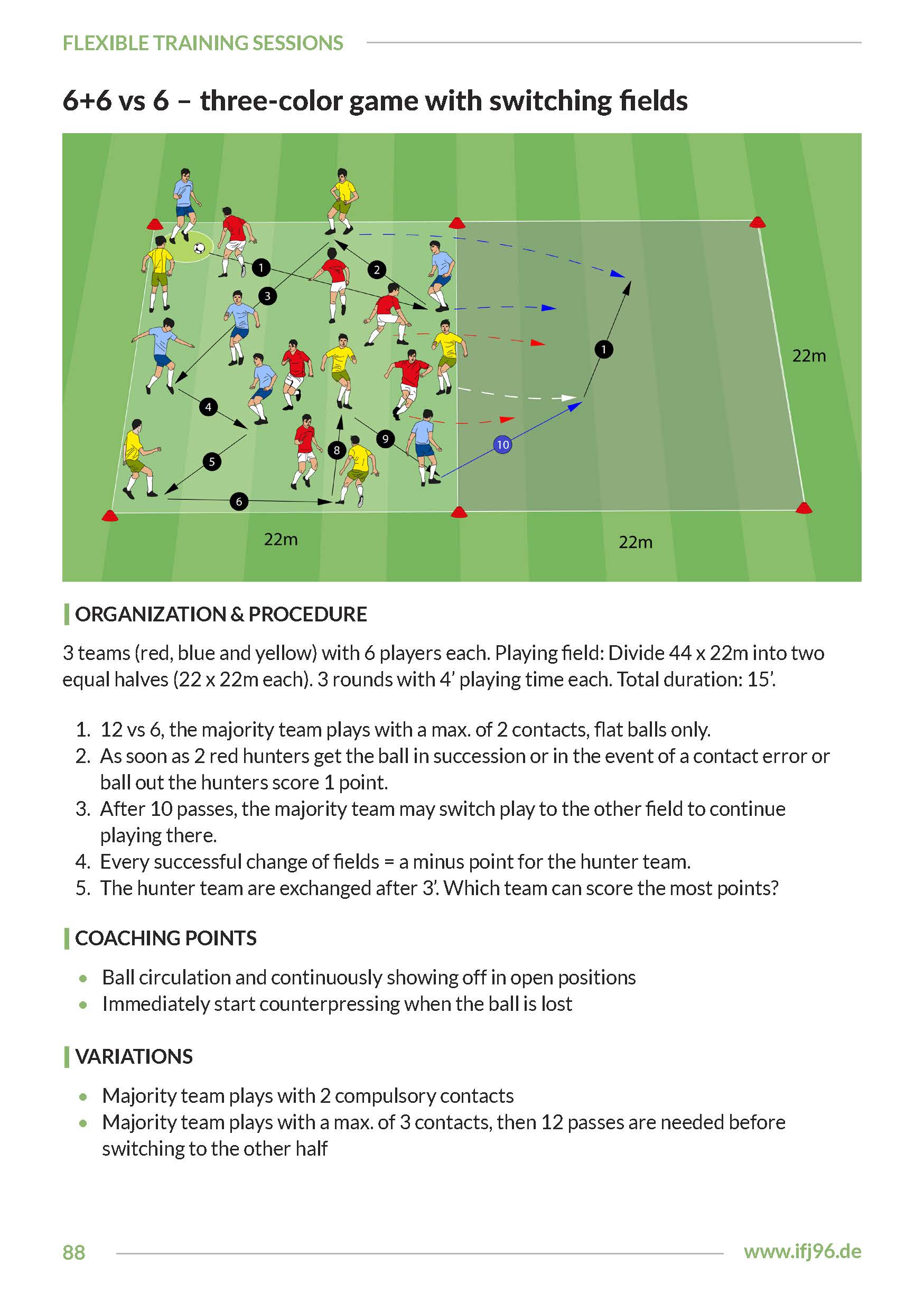 The special thing about his concept is the system of organizing the game forms. It can be used very flexibly and adapted to the number of players on the training day.