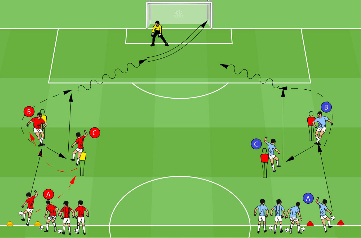 Technische und taktische Fähigkeiten werden erklärt, typische Fehler analysiert und das richtige Verhalten im 2v1 oder 3v2 gegen den Torhüter trainiert. Der Schwerpunkt liegt auf schneller Entscheidungsfindung, Kontermentalität und Abschlussverhalten.