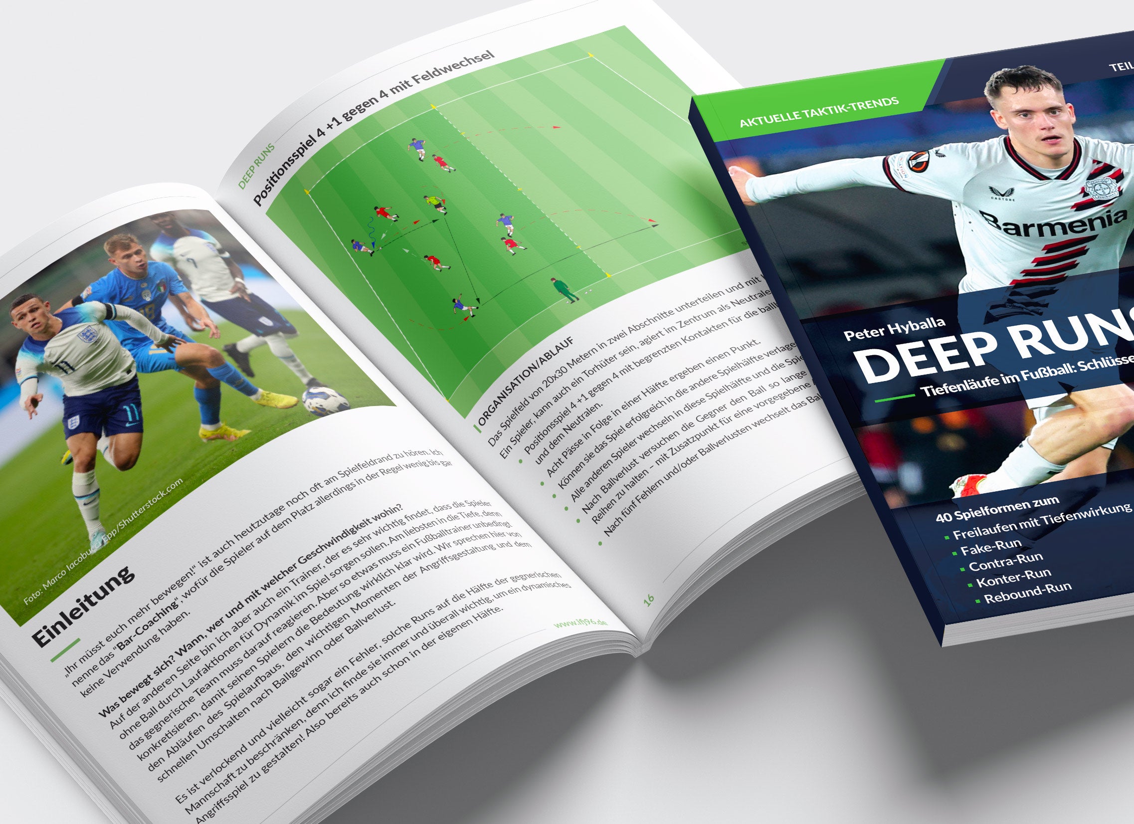 In seinem neuen Buch „Deep Runs – Tiefenläufe im Fußball“ zeigt Peter Hyballa, wie moderne Mannschaften durch clevere Laufbewegungen ohne Ball Spiele entscheiden können. Auf 132 Seiten mit 40 Spielformen erklärt der erfahrene Profitrainer – unterstützt von Beispielen aus seiner Arbeit mit internationalen Teams – eines der am meisten unterschätzten Elemente des Fußballs: das intelligente Bewegungsspiel in die Tiefe.