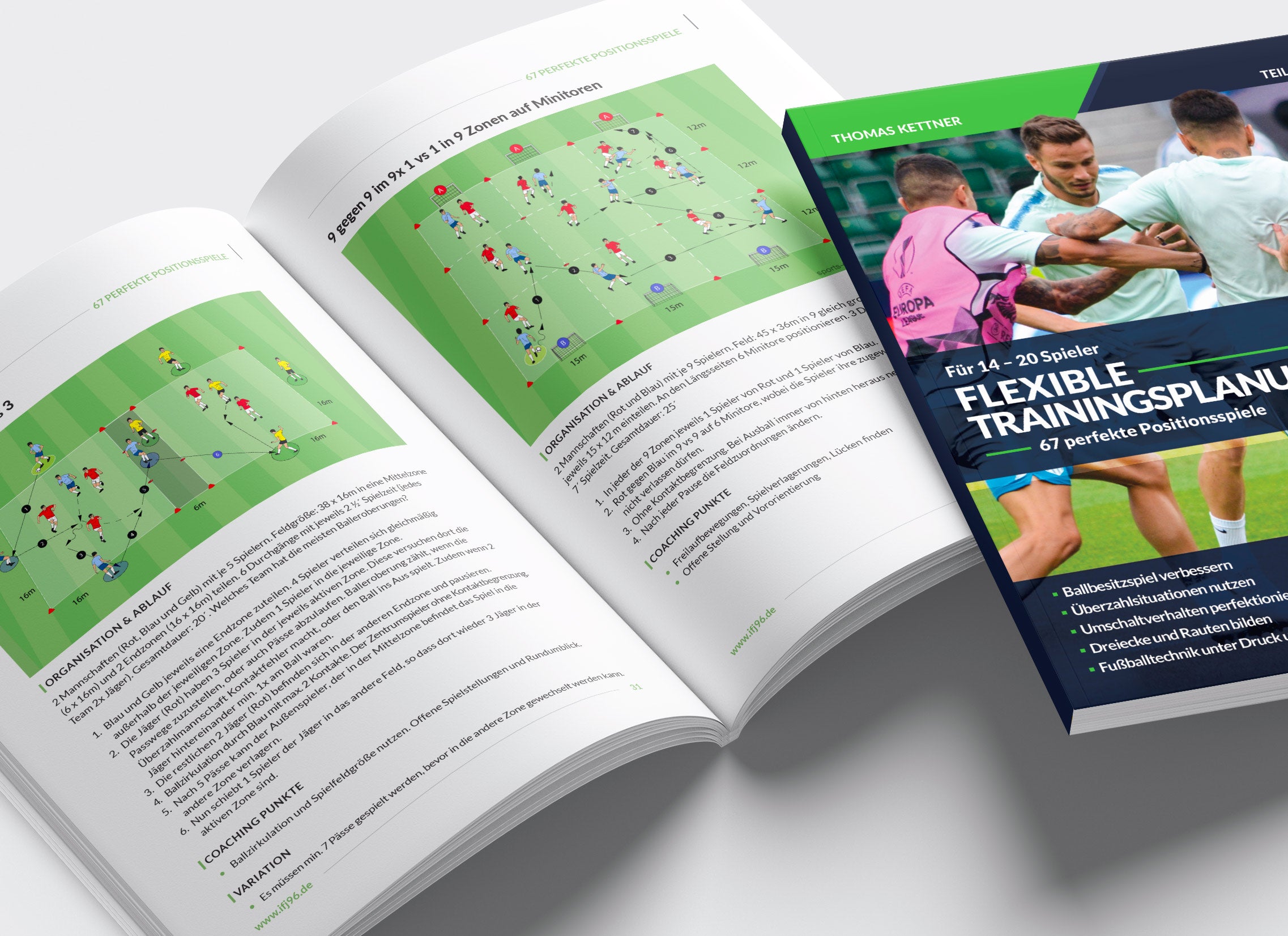 Der vierte Teil der Heftreihe „Flexible Trainingsplanung“ befasst sich mit dem Thema „Positionsspiele für Spielerzahlen von 14 – 20 Spielern“. Wir Trainer kennen alle die Herausforderung, einen tief und kompakt stehenden Gegner zu bespielen.