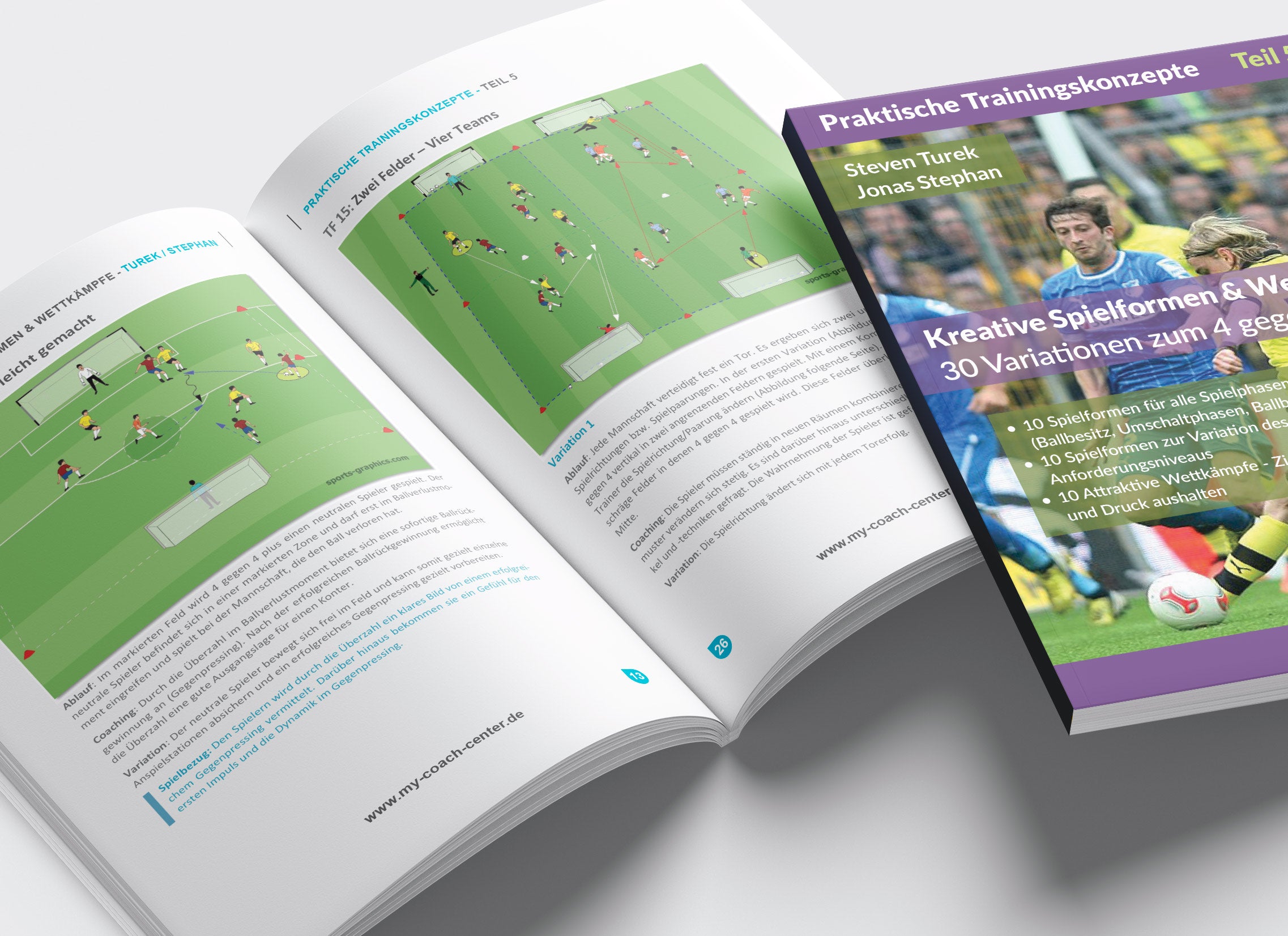 Das 4-gegen-4-Format bietet zahlreiche Vorteile: viele Ballkontakte, klare Spielsituationen und häufige Toraktionen. Die im Heft gezeigten Ideen lassen sich aber ebenso auf größere Spielformen bis zum 11 gegen 11 übertragen oder miteinander kombinieren. Durch Zusatzregeln lässt sich die Intensität gezielt steigern und der Trainingsfokus variieren.