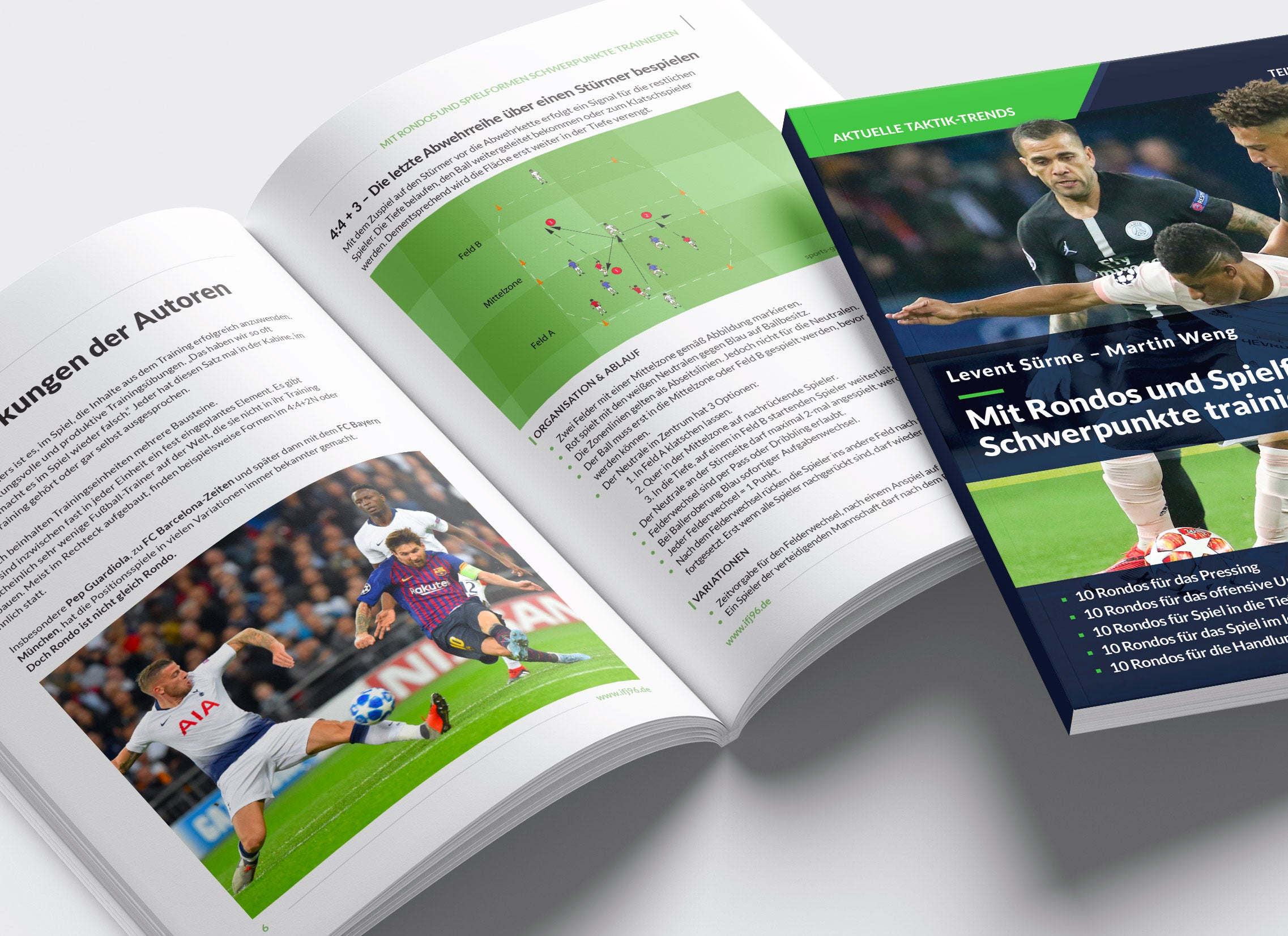 Das Buch „50 Rondos/Spielformen“ von Levent Sürme und Martin Weng, bietet eine systematische Sammlung mit fünf taktischen Schwerpunkten: Pressing, offensives Umschalten, Spiel in die Tiefe, Aktionen im letzten Drittel und Handlungsschnelligkeit.