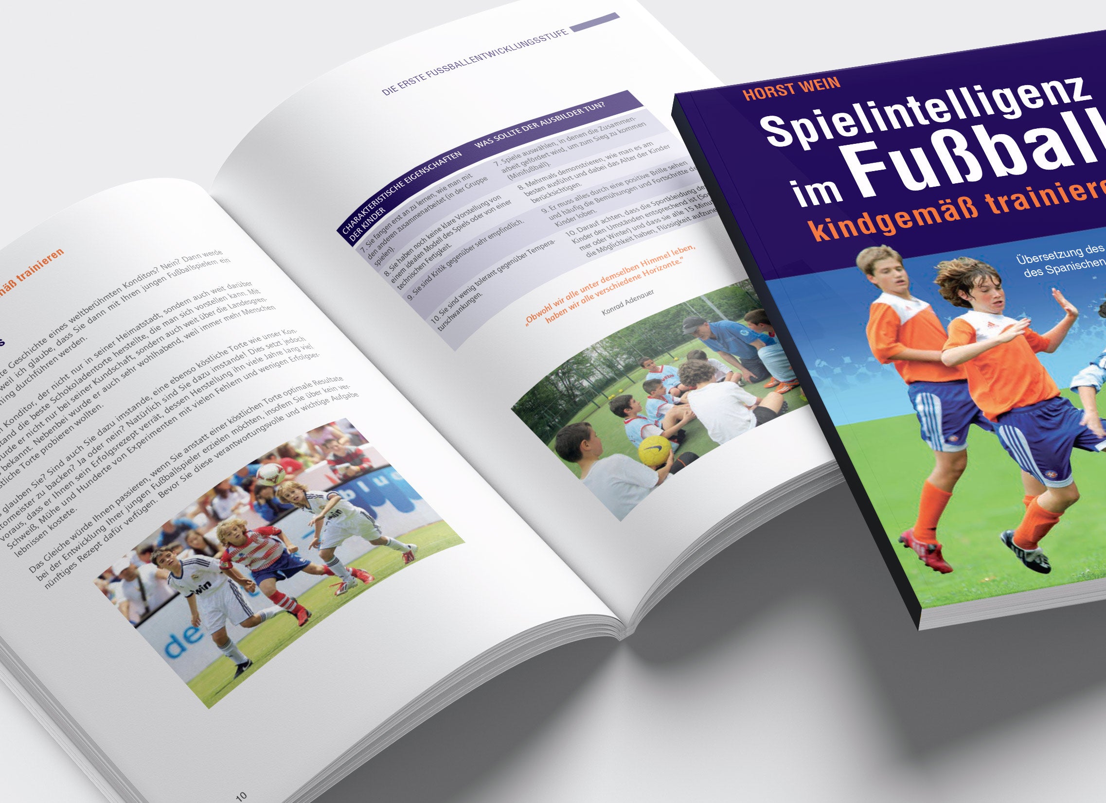"Spielintelligenz im Fußball - kindgemäß trainieren" zeigt eindrucksvoll, wie das komplizierte Fußballspiel mit einem altersgerechten Training in vier verschiedenen Entwicklungsstufen und mit einem neuen Wettspielmenü, das auch die Spielintelligenz Schritt für Schritt fördert, perfekt an die geistigen und körperlichen Fähigkeiten der Kinder und Jugendlichen angepasst werden kann.