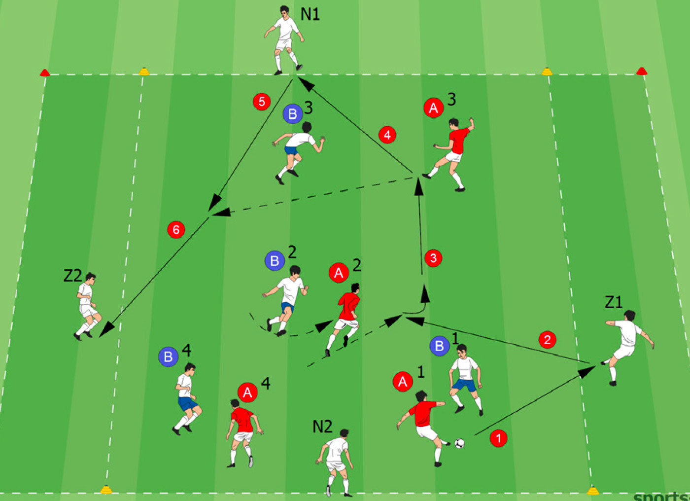Ziel ist es, die Spieler dazu zu befähigen, mehr Torchancen zu kreieren und diese effizient zu nutzen. Die Übungen fördern das taktische Verständnis und die Entscheidungsfähigkeit unter realistischen Wettkampfbedingungen.