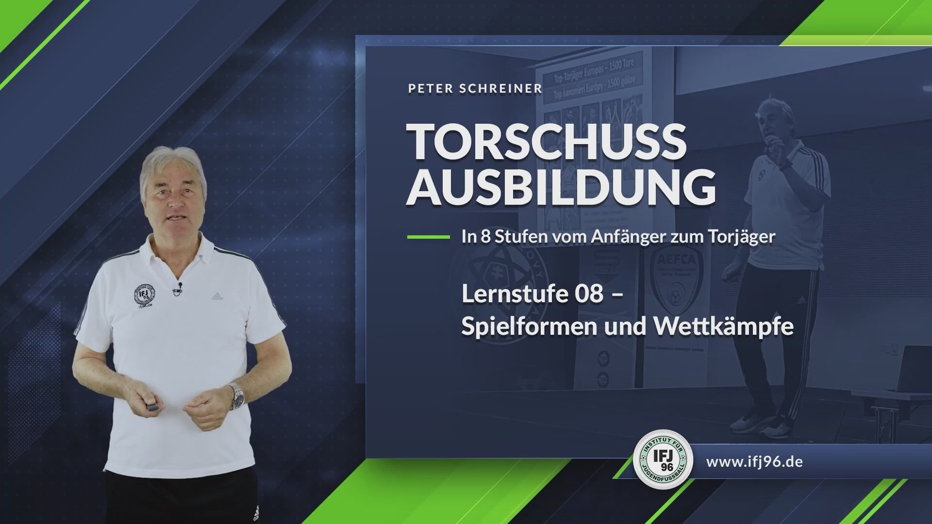 Diese Online-Ausbildung vermittelt dir ein vollständiges Konzept für die Torschuss-Schulung – von den Grundlagen bis zur wettkampfgerechten Anwendung. Peter Schreiner zeigt in acht Lernstufen (297 Minuten Videomaterial) praxisnahe Methoden, um Spieler vom Anfänger bis zum Goalgetter zu entwickeln.