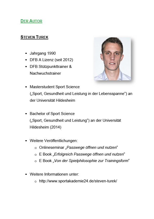 Der letzte Teil des Buches stellt praxisnahe Trainingsformen vor. Die Bandbreite reicht von spielnahen Übungsformen bis hin zu komplexen mannschaftstaktischen Spielformen.