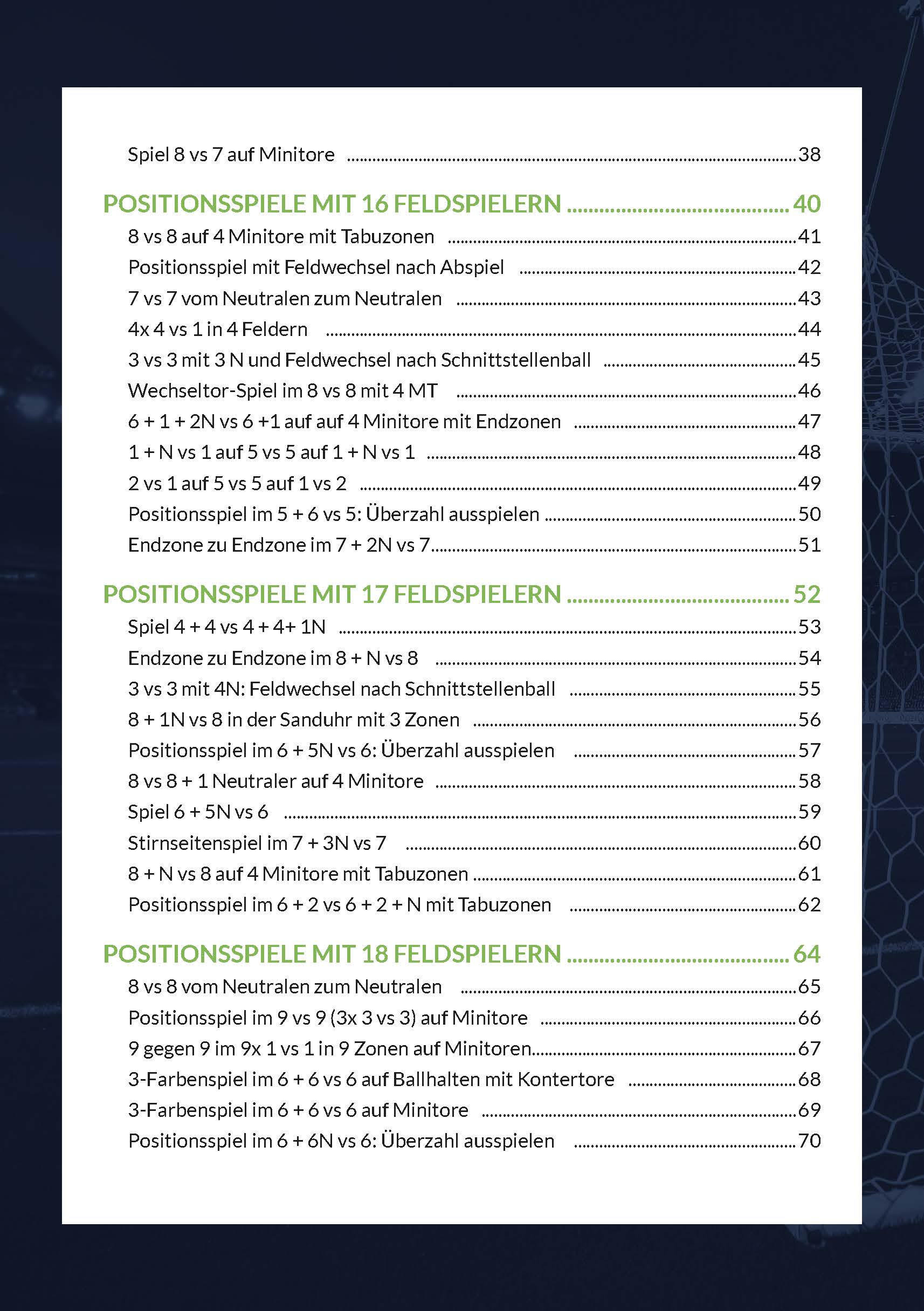 Der vierte Teil der Heftreihe „Flexible Trainingsplanung“ befasst sich mit dem Thema „Positionsspiele für Spielerzahlen von 14 – 20 Spielern“.