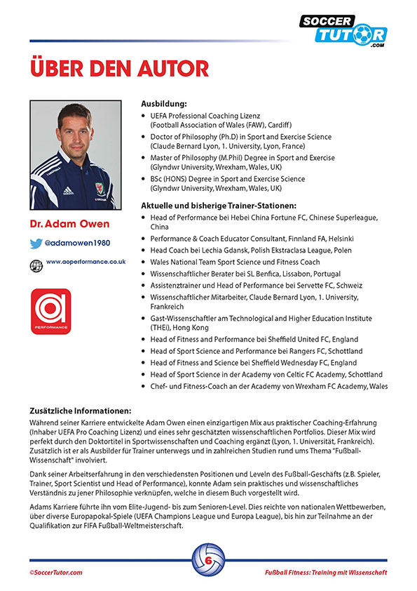 Dieses fantastische Buch (komplett in Farbe) wurde von Adam Owen Ph.D. (UEFA Professional Coaching Licence und Ph.D. in Sport und Exercise Science) geschrieben, seines Zeichens Sports Science & Fitness Coach der Walisischen Nationalmannschaft und Research Science Consultant von SL Benfica Lissabon. Co-Autor Alexandre Dellal Ph.D. ist Head of Physical Preparation bei OGC Nizza und ein führender Forscher in der Welt der Fußballwissenschaft.