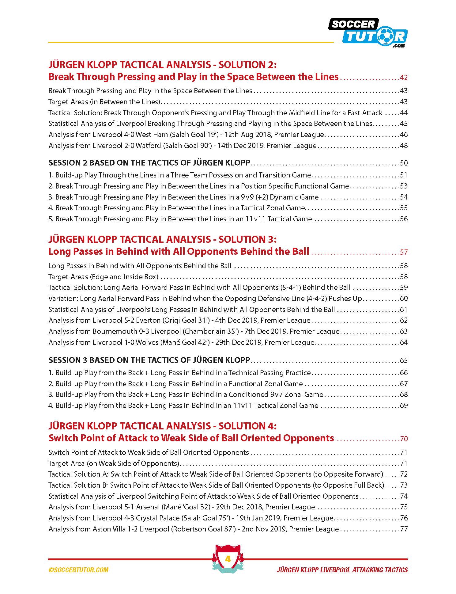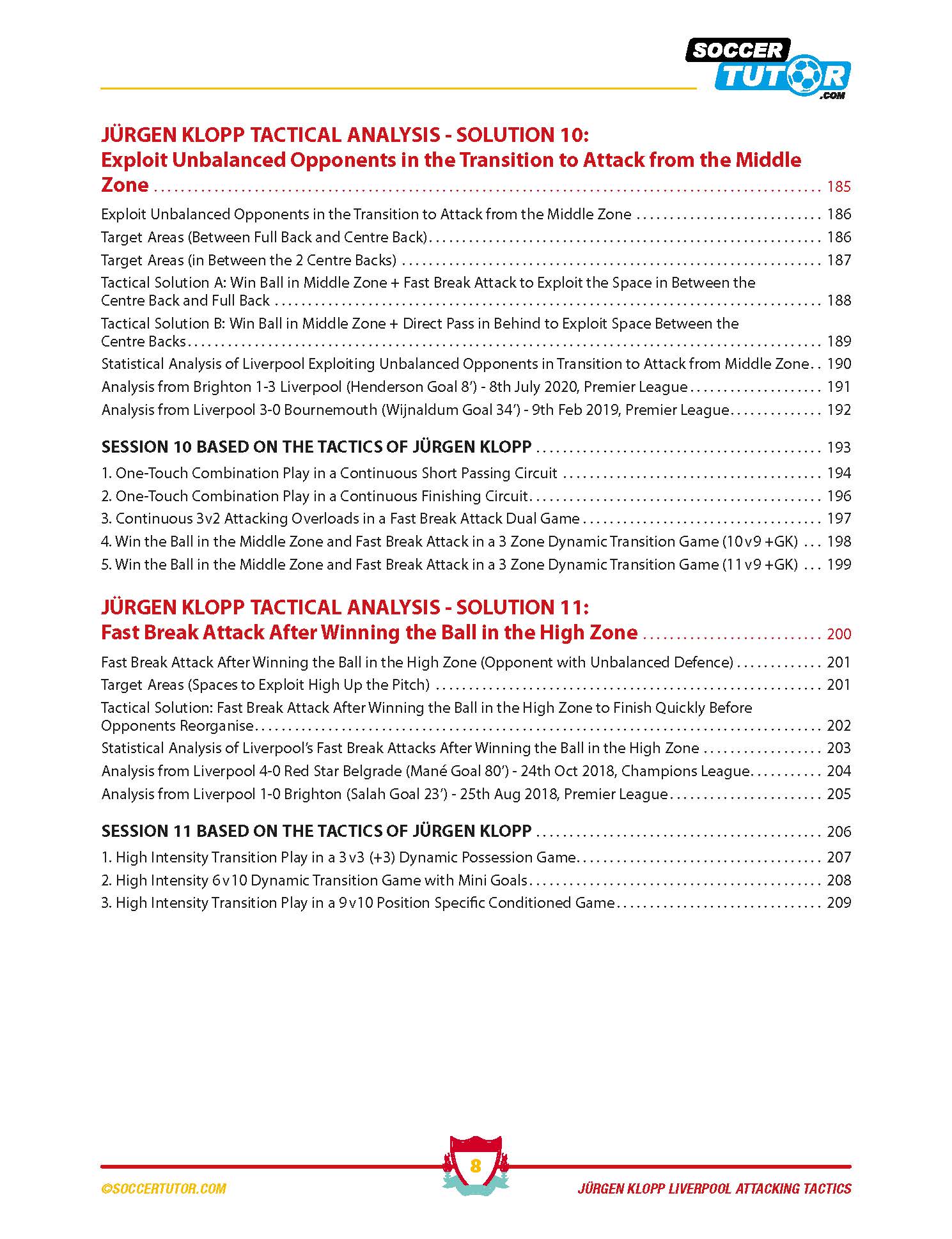 Each Tactical Situation has analysis of Jürgen Klopp Liverpool attacking tactics and is followed by a full training session to help you input the tactics into your training sessions for your team.