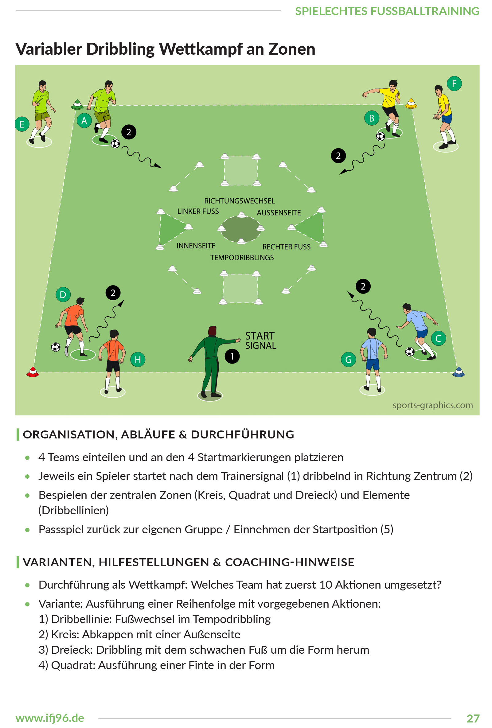 - 20 Übungsformen und Wettkämpfe zur Verbesserung der Basistechniken: Dribbling & Finten - Passspiel & Ballmitnahme - Flanken & Torabschluss