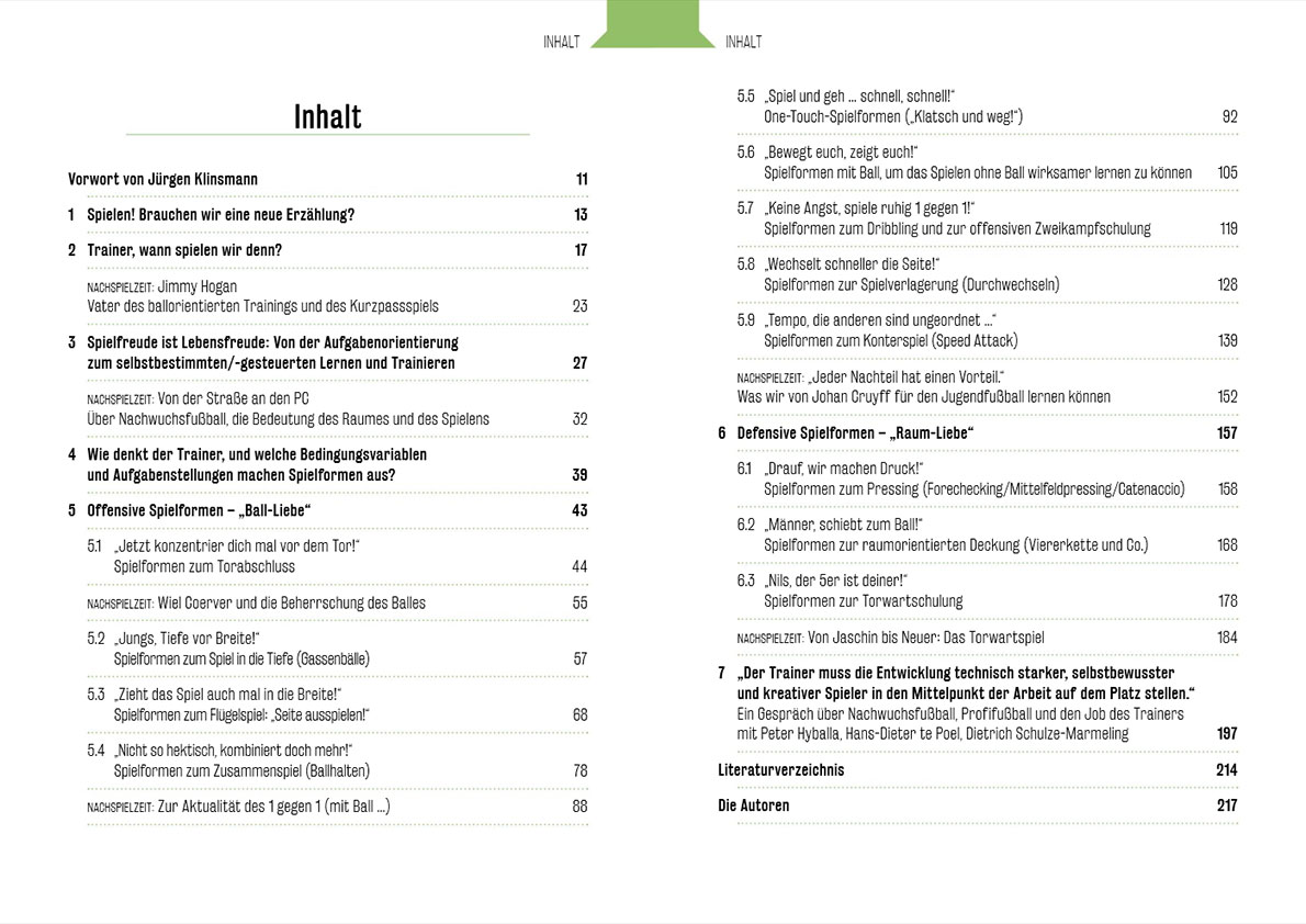Ergänzt werden die praktischen Spielideen und vorangestellten didaktischen Überlegungen durch Ausflüge in die Fußballgeschichte und den Verweis auf typische Spieler oder Mannschaften. So ist ein Buch entstanden, das sowohl Trainingslehre wie Lesebuch ist.