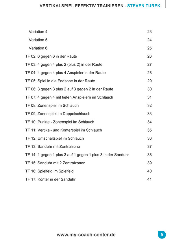 Besonders interessant sind die Organisationsformen in denen Vertikalspiel provoziert wird! Abgerundet wird das zweite praktische Trainingskonzept mit über 20 praxisnahen Traininigsformen. Bei jeder Trainingsform wurde darauf geachtet, dass sie leicht zu variieren und leicht an andere Gruppengrößen anzupassen ist!