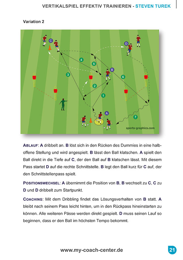 Der Fokus liegt dabei weniger auf taktischen Feinheiten als vielmehr auf der Vermittlung im Trainingsprozess. Es wird aufgezeigt welche Fähigkeiten Spieler individuell aber auch in der Gruppe beherrschen müssen, um Vertikalspiel zu perfektionieren.