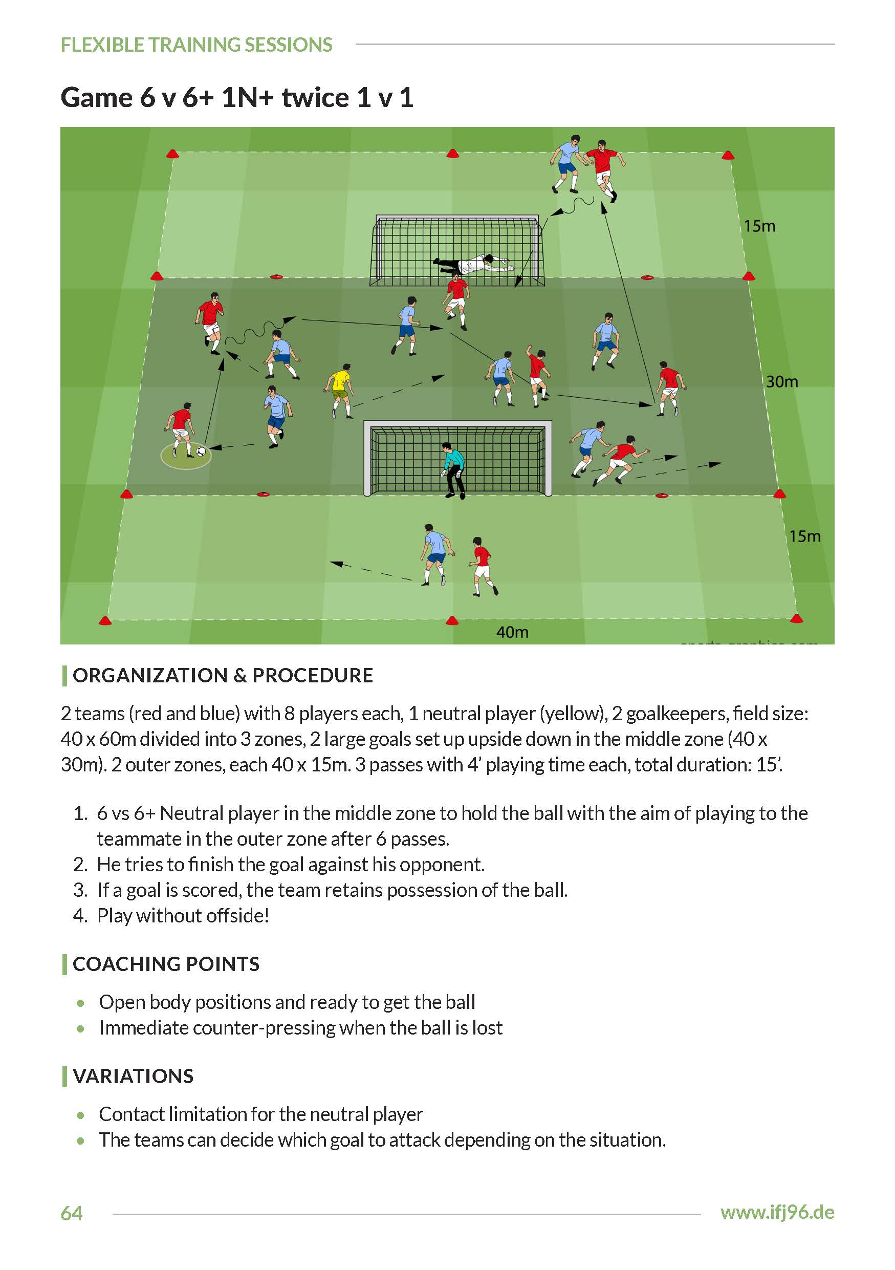 All parameters (field size, duration, number of passes, etc.) can be easily adapted to the age group and skill level of your players.