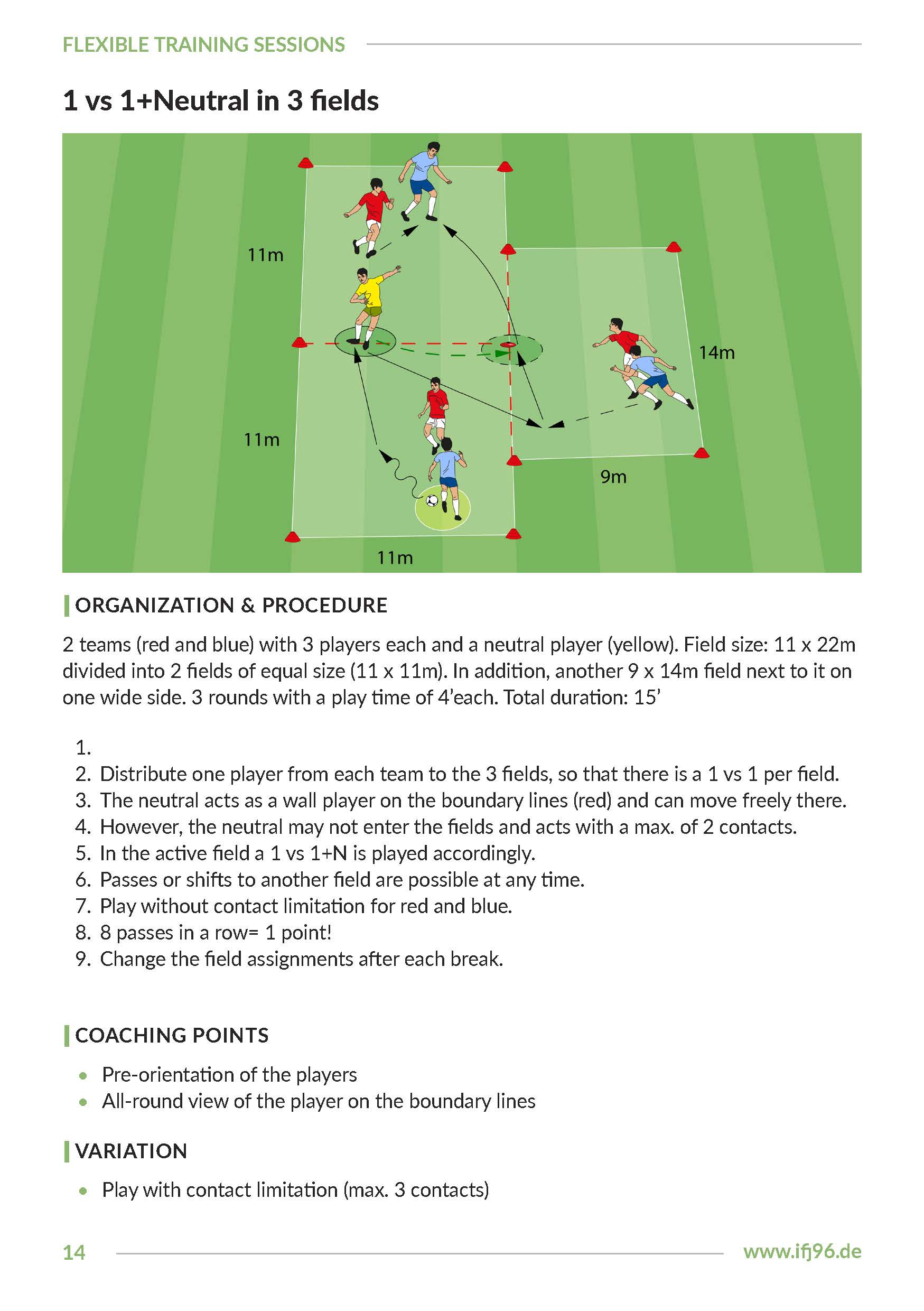 The special thing about his concept is the system of organizing the game forms. It can be used very flexibly and adapted to the number of players on the training day.