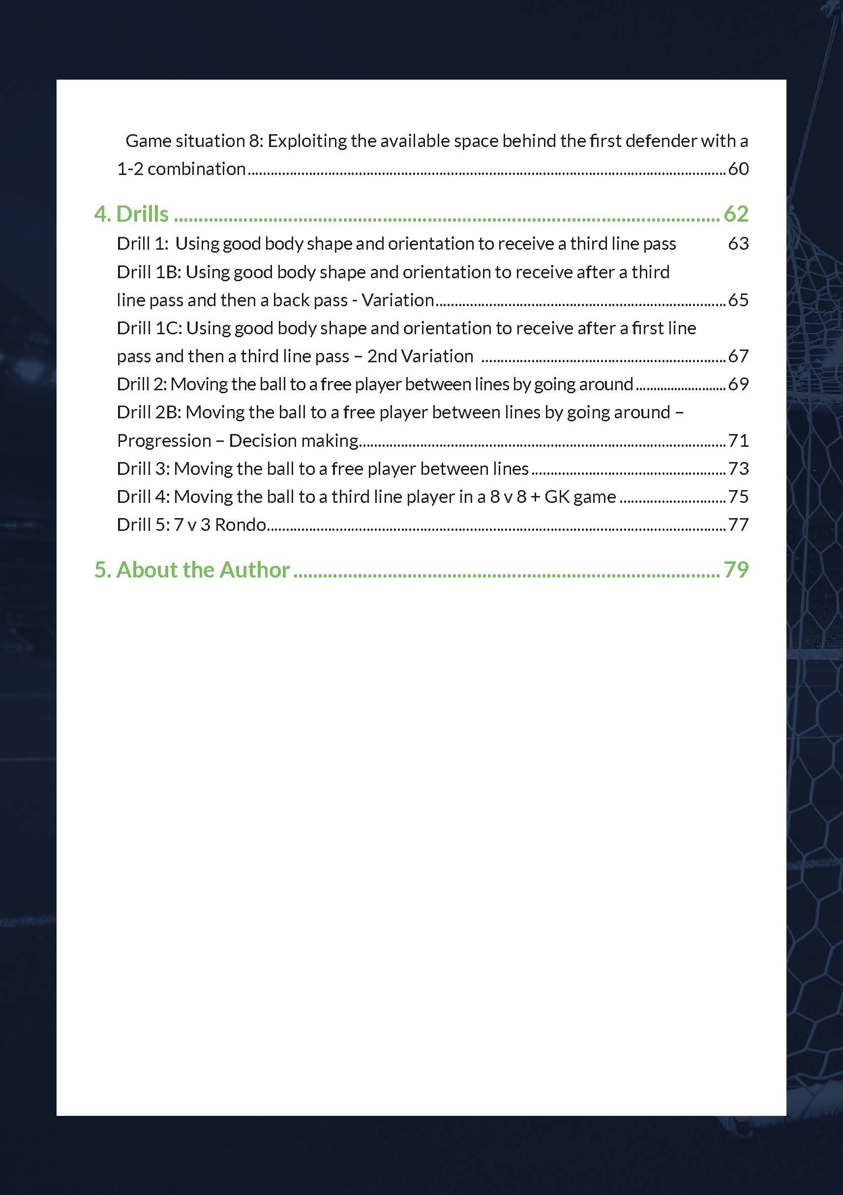 The aim of this book is to focus on positional style of play. It will provide information about why this specific style is more effective than the others, while the focus will be on how the ball is moved to the free player between the lines of the opposition, by following certain principles, synchronizedmovements and combination play.
